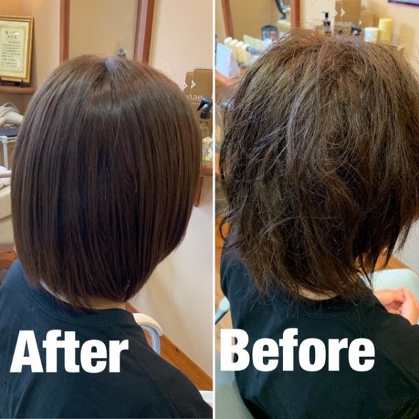 度重なるホームカラーや、縮毛矯正によりダメージが深刻化し、元々の癖毛も相まって何をしてもまとまわらなくなってしまわれていました